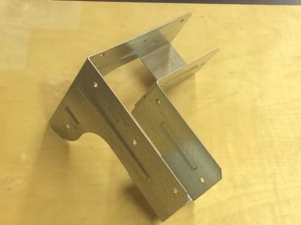 Lazos de Simpson: Lazos de Simpson se encuentran en el edificio soportes estante del metal. Estos conectores rígidos lazo se utilizan para asegurar a dos miembros de madera (formando un ángulo de 90°) a un poste vertical. Si esto suena confuso, Imagínense tres 2 × 4 de intersección para formar una esquina.