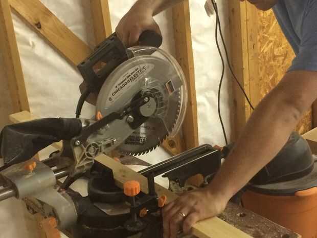 Como he mencionado, que tenía un Home Depot asociado rasgar la hoja de madera contrachapada en la mitad longitudinalmente, creando dos 2 ' x 8′ de piezas. Casi todos los cortes restantes implican recorte 2 × 4 a la longitud adecuada.