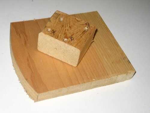 Coloque el trozo de 2 x 4 en el centro de la pieza de madera que sirve como base.