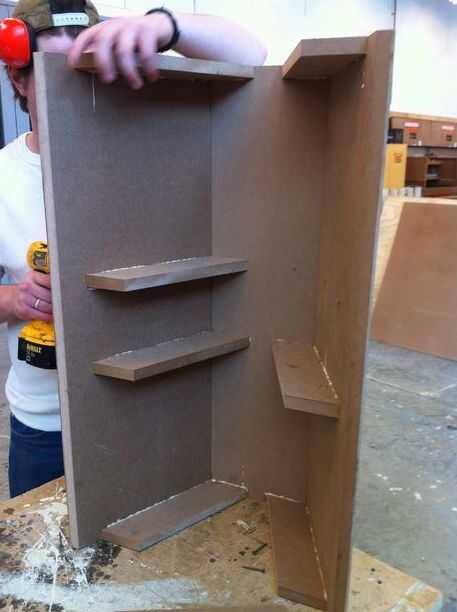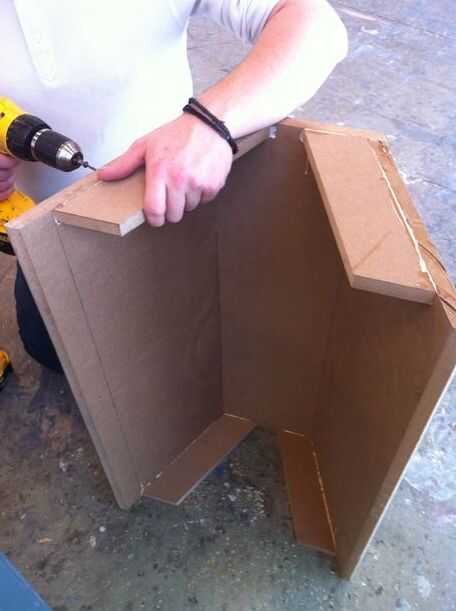 Desde allí algunos de MDF cortadas en 2" por 10" las tiras y cortar con el mismo ángulo de 22 grados. Estos le aseguró dentro de firme por las paredes y me den algo para la cara también.
