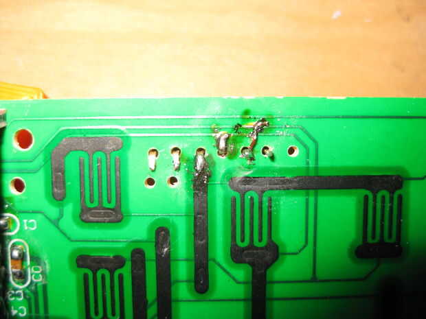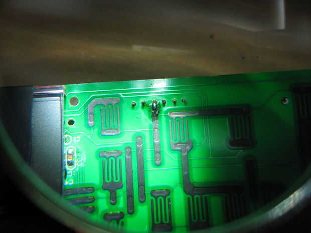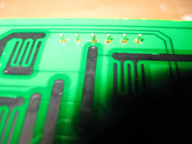 * Usted tiene que utilizar un bisturí para eliminar la capa sobre el cobre frente a los pines seleccionados.