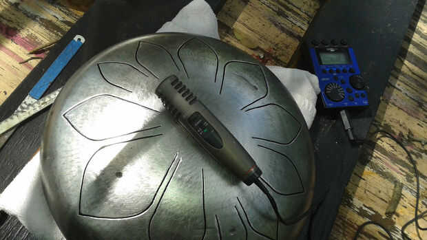 Después de moler los bordes de las lenguas, calor tratar el tambor y la conexión de los dos lados que era tiempo de perfeccionarlo. He comprobado con el sintonizador y todas las notas fueron sobre un cuarto paso demasiado alto para la clave de la E. Yo corte con cuidado las lenguas con una hoja de sierra hasta que tuve las notas E, G, A, B, D, E, G y A en las lenguas pequeñas.