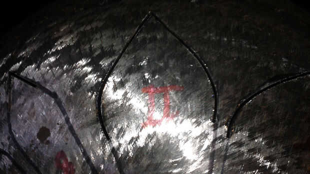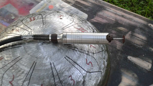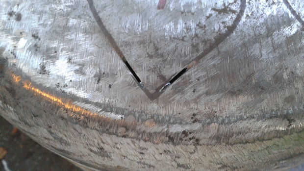 Cuando la penetración donde hecho usé una sierra caladora para completar los cortes de lengua inicial. He modificado la hoja de rompecabezas raspando la parte posterior de la hoja en un ángulo. Esto permite que la cuchilla cortar un radio más apretado sin demasiada fricción. Reduce la vida de la cuchilla un poco menos metal significa menos disipación de calor, pero es un buen compromiso. Inserta el juego y me corte cada lengua hacia el punto donde se unen los cortes. Hacer este corte primero. Si lo hago pasado la cuchilla tiende a enlazar cuando finalmente se rompe a través y se dobla la lengüeta. Después de los puntos se corte cada lengua en la otra dirección. Corto hasta poco más allá de la curva donde el corte empieza a enderezar. Voy cortar el resto del camino cuando es el momento de afinar el tambor.