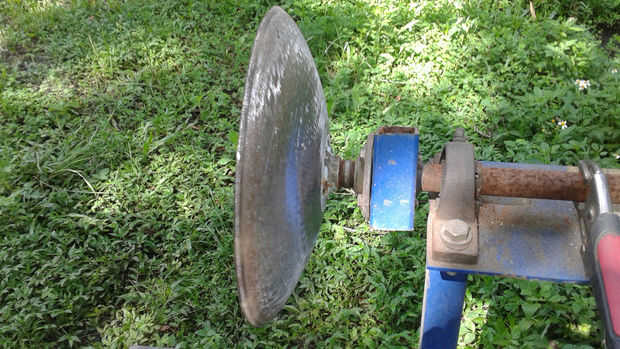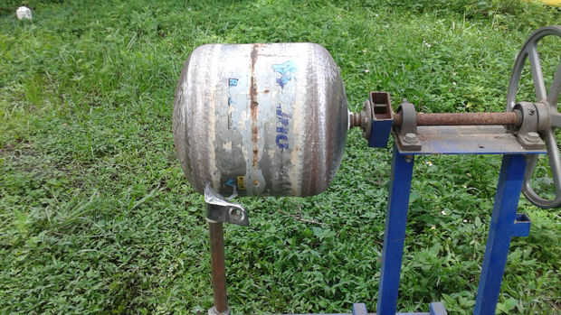 He bloqueado el eje con un par de Vice apretones y utilizar una amoladora para cortar la parte superior del tambor. Que dejar de lado y cortar la línea para separar la parte inferior. Tenía la parte superior hasta la parte inferior para asegurar un buen ajuste.