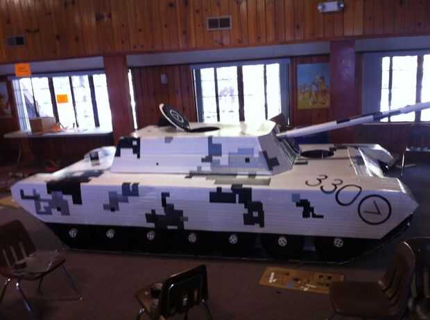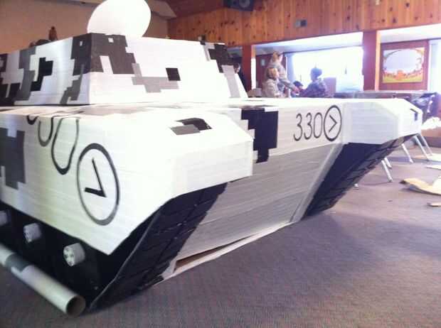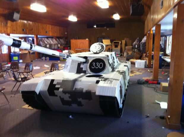 mis amigos y yo estábamos tratando de pensar en algo que podríamos construir de cartón y cinta adhesiva. Llegamos a un tanque. Fue un poco más costoso que originalmente estimado, pero fue muy divertido y el resultado final es sorprendente. Te sople a tus amigos! Este instructable pasarán a través de cada paso en el proceso, y que usted podrá construir su propio tanque para que juegue (o cat niños/mascotas/vecinos/de su vecino para jugar). Por cierto, por favor pulse el botón de votación para el concurso de cintas de cartón y conducto!!!!!!