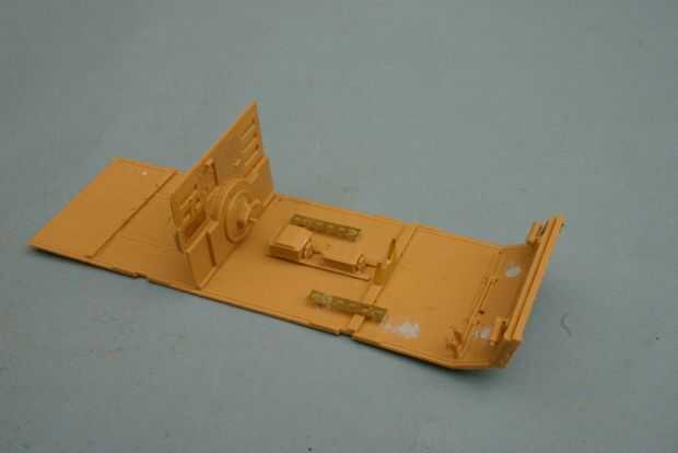 Una nota adicional para cualquier construcción de este modelo - no será posible ajustar el pedal del acelerador y su vinculación con el lado de estribor del casco en su lugar, usted simplemente no puede maniobrar el acoplamiento redondo el eje final. La respuesta que adoptó fue caber los ejes a cada lado del casco, luego el varillaje y pedal para el glacis, luego fije el lado de babor y glacis y finalmente fijar el costado de estribor. El inconveniente es que tenía que poner las varillas mencionadas antes entre las palancas y las cubiertas del coche en el casco; el puerto uno puede hacerse antes de los glacis está en su lugar, pero el estribor es un interesante ejercicio de manipulación de pinzas.
