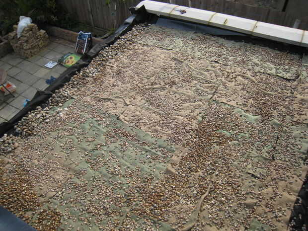3. poner grandes grava o piedras alrededor del borde del techo en el espacio que has dejado - esto es para asegurar un drenaje en la parte inferior y también para las plantas que crecen en el edificio