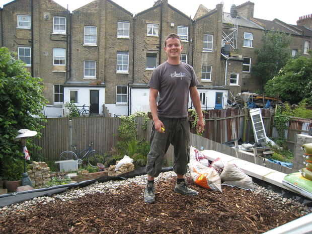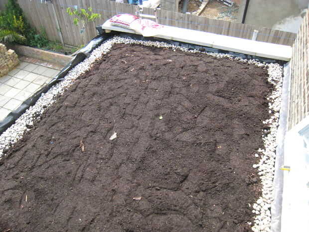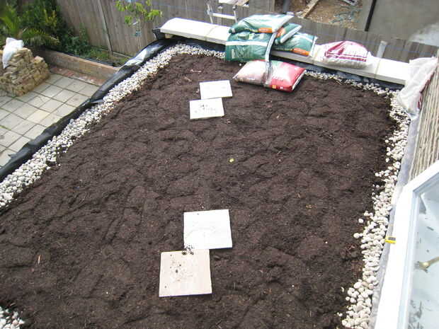 6. la última cosa que hacer es poner unas losas de pavimentación - esto es por dos razones, 1 - así que usted puede caminar sin pisar las plantas, 2 - así que usted puede poner una escalera en el techo para llegar a la mayor si es necesario - de lo contrario usted a poner la escalera en el techo de vida y puede dañar los trazadores de líneas etc.