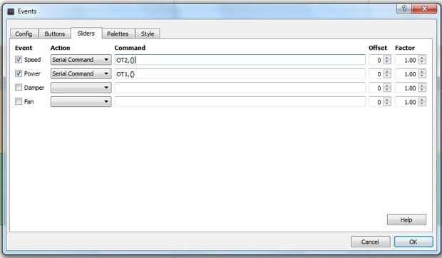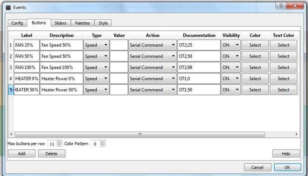 2) haga clic en Configuración >> Eventos >> botones. Estos son los botones que utilizas para controlar tu asado de prueba. Como se muestra en la foto botones, tengo un botón que prueba una variedad de velocidades y niveles de potencia. No huyas del calentador al 100% sin tener el ventilador en marcha! Usted se quemará su bobina de calefacción...