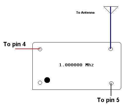 Ahora agregar una antena con el conector de frente el punto negro. Puede utilizar prácticamente cualquier alambre aislado como una antena, siempre y cuando no es demasiado grueso. He utilizado un cable de teléfono de 25 pies.