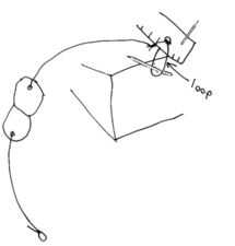 Crear un bucle de cadena va por el agujero de la regla. Este bucle debería llegar abajo de la uña y ser capaces de mantener la regla en su lugar.