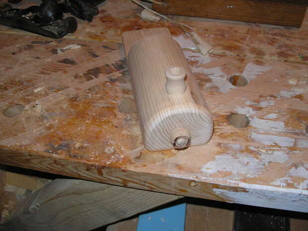 4. Perfore un agujero de la clavija para el faro (opción: Inserte el faro en otro agujero de gran diámetro perforado por la broca forstner pero acabo de cortar el faro y atado con la clavija de madera).