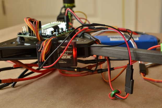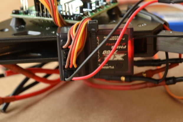 Al realizar la conexión, deberá encenderse la pantalla en el KK2.1. También verá una luz roja en el receptor, que indica que el receptor se alimenta así. No bien terminamos todavía aunque.