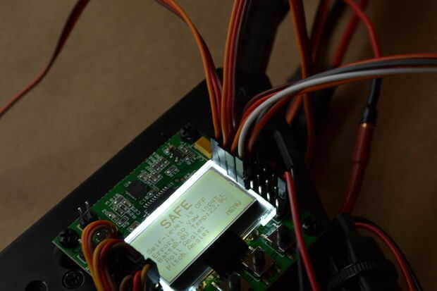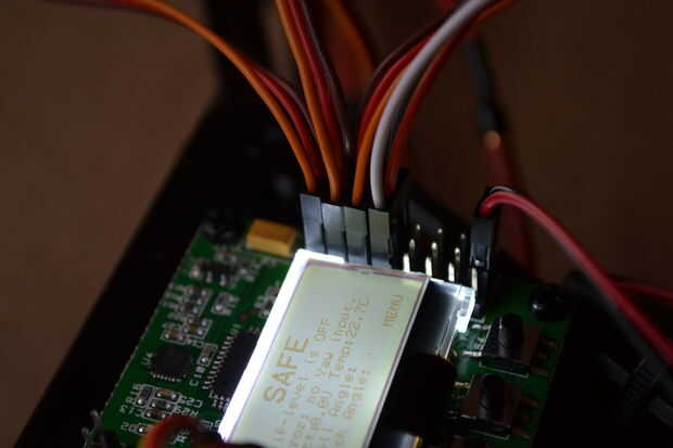 Luego, conecte el otro extremo del cable de extensión de servo en la salida del Motor 4 en KK2.1 con el cable blanco más cercano a la pantalla y el cable negro más lejos lejos.