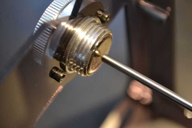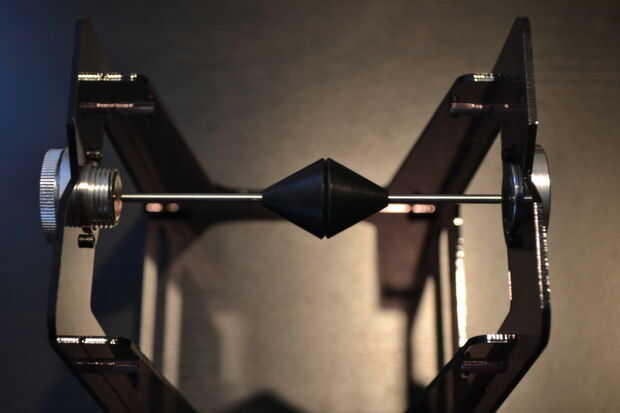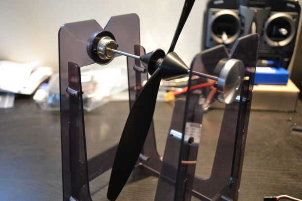 Para equilibrar nuestros apoyos, utilizamos una herramienta especial llamada, como era de esperar, un balanceador de hélice. Un balanceador de hélice consta de un eje metálico suspendido por dos imanes. Mediante el uso de suspensión magnética, hay prácticamente cero fricción, que significa, cuando ponemos a prueba nuestros apoyos, incluso la más leve diferencia en el peso de los dos lados de la hélice será notable.