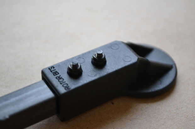 El motor se monta en los otros dos brazos es mucho más fácil. Simplemente coloque un montaje del motor en cada brazo con la parte plana del Cerro hacia arriba.