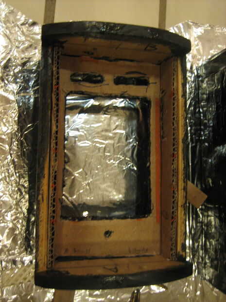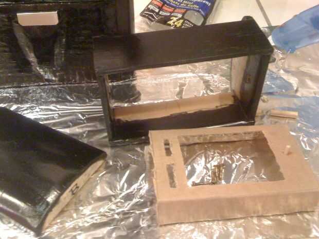 Así que ahora tenemos una película para simular la pantalla de escáner médico. Todo lo que necesitamos es un tricorder. En primer lugar, construimos una caja de cartón corrugado cara 3 para las dimensiones externas precisa de la iphone. A continuación, construimos una pequeña caja de madera para sostener la caja de cartón (la "cabeza" del tricorder). Finalmente, construimos una gran caja de madera para sostener la caja pequeña (el "cuerpo" del tricorder). Así que en lugar de estado las medidas en el frente, necesita obtener las mediciones de la etapa previa, es decir la caja de cartón debe caber el teléfono, la caja de madera pequeña debe tener la caja de cartón y la caja grande debe sostener el pequeño. Y las dimensiones externas del teléfono pueden variar un poco, si lo tienes en un estuche protector o no.