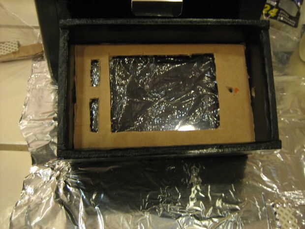 La caja de cartón tiene un recorte para la pantalla y altavoz, además de un agujero de 1/8 de pulgada sobre el botón "home". A montar un pequeño pedazo de barra de pasador después de dejarnos presionar el botón "home" para activar el teléfono una vez que se encajona. El ancho de la caja es exacto, pero la longitud es ligeramente más larga que el teléfono, utilicé algunas cuñas de cartón adicionales para el teléfono en lugar de la cuña. Tenga cuidado aquí, no destruir su teléfono.