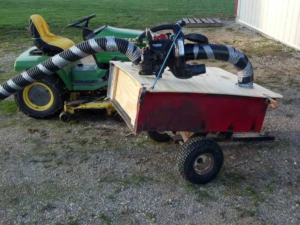 Coloque la cubierta en el carro. Si aire tirar de la carreta, pocas cuerdas del amortiguador auxiliar debería ser suficiente para sostener la tapa. Usé 2" abrazaderas de resorte para acortar el perímetro de la madera contrachapada en lugares cerca de 4. Un par de cuerdas del amortiguador auxiliar mantenga el soplador en la derecha en la tapa.