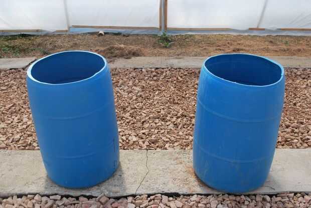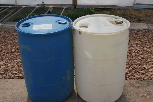 Puede utilizar dos tambores de 50 galones como estos o cualquier otro tipo de recipiente que contiene agua para los peces. Incluso podría reducir esto y ponerlo encima de un acuario interior.