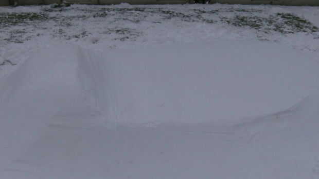 Esta cama está formada por la nieve, una pala de nieve, una carretilla, un trineo de disco, un tubo de PVC, una pala de carbón, un plantador del bulbo, una pequeña pala para, hojas, fundas, almohadas, agua, las uñas y mantas térmicas.