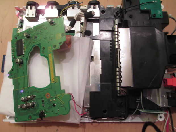 La Wii ha sido mucho. Comprobar si está todavía vivo por reconexión de circuitos del lector de disco a la placa base (Recuerde aislar desde el metal escudo EM). Si todo ha ido bien, tu Wii debe poder subir y funcionan perfectamente (leer discos excluidos, woops). Si tu Wii no se encienda, verifique que todo está conectado y de pantalones cortos.