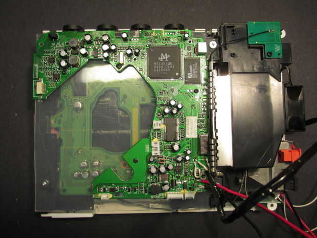 Vamos a limpiar esta configuración un poco. Cubrir la superficie del escudo EM con un material aislante (cinta de conducto funciona bien). Luego, pegar placa de circuito del lector de disco para el escudo de EM.