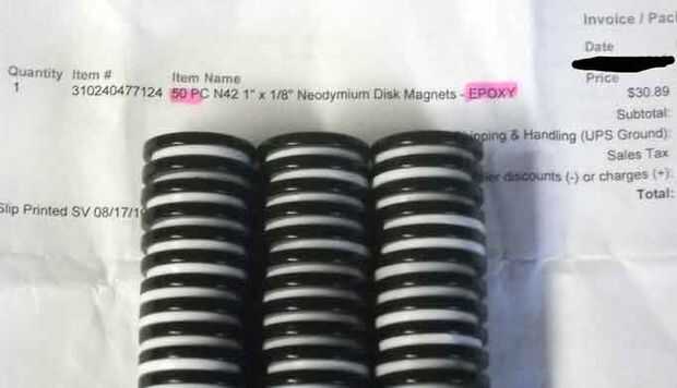 - Butt-carga de 1" diámetro de las tierras raras imanes de disco revestido en epoxi (el epoxi: porque estaba preocupada por saltar, resistencia del rasguño, agua y aceite)