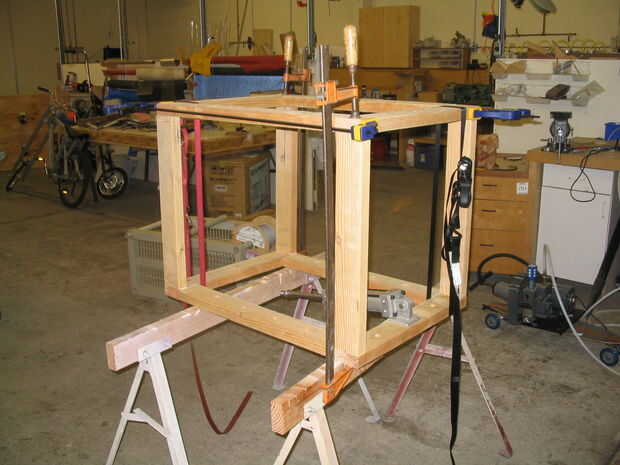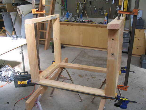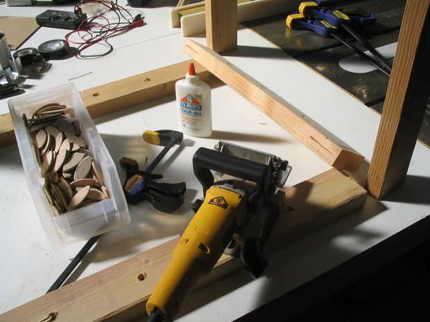 utilicé madera con galletas y pegamento. Yo pude han utilizado tornillos, pero seguro love utilizando mi unidor de galletas. Mi jaula es de 24 pulgadas de ancho, 27 pulgadas de alto y 35 profundo.
