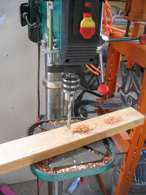 Después de taladrar agujeros en la madera, se me cayó en chatarra espigas y barras para bares.