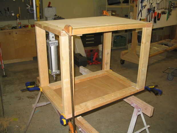 necesitaba un cilindro neumático controlado electrónicamente por un proyecto que yo actualmente estoy diseñando. Miré en la compra de uno, pero resulta que están más allá de mi presupuesto. Mirando a través de la cochera me hizo pensar que podría ser