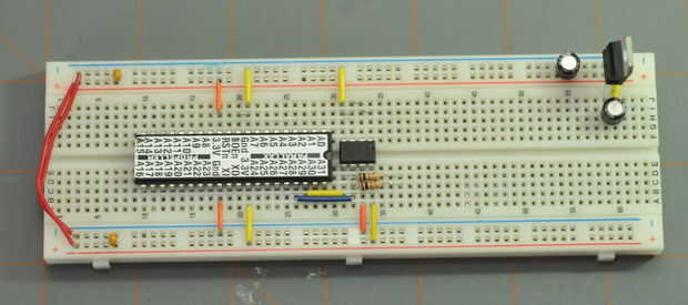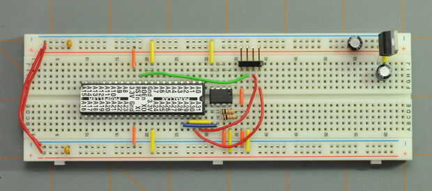 Añadir la EEPROM, conectar Vdd y VSS.  También agregar un encabezado de 4 pines como se muestra en la foto.