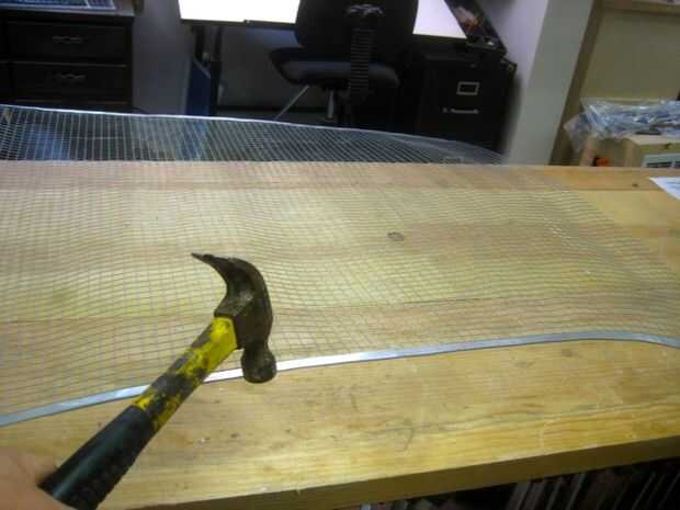 El cuadro 2 demuestra esto más claramente. Luego lo entregaron y golpeado al otro lado para aplanar la malla como el aluminio tiende a rizo en la dirección del golpe. Hacer lo mismo al otro lado.
