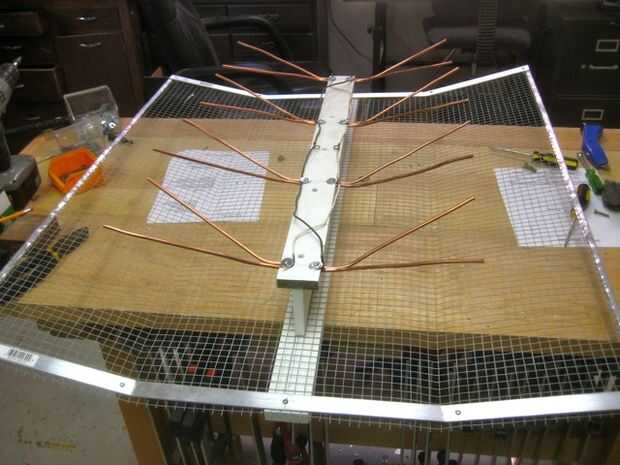 También aviso que han sido doblados los bigotes remite 2 1/2 pulgadas para coincidir con las alas del reflector. En la actualidad, este lo podría haber hecho plano. Pero sólo el reflector directamente detrás de los bigotes habría una señal para ellos. La configuración doblada crea reflexión un poco más y por lo tanto un poco más la señal para los bigotes. Pero no mucho. Recuerde, estoy en busca de señales de fringe. No puede estar en esa posición. Estaciones podrían estar más cercanos para usted.