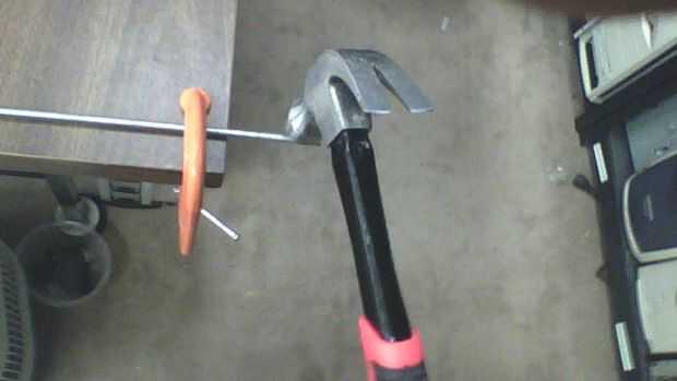 Utilice un martillo (Foto 2) o unas pinzas (Foto 3) para doblar la barra downwards(pic 4).