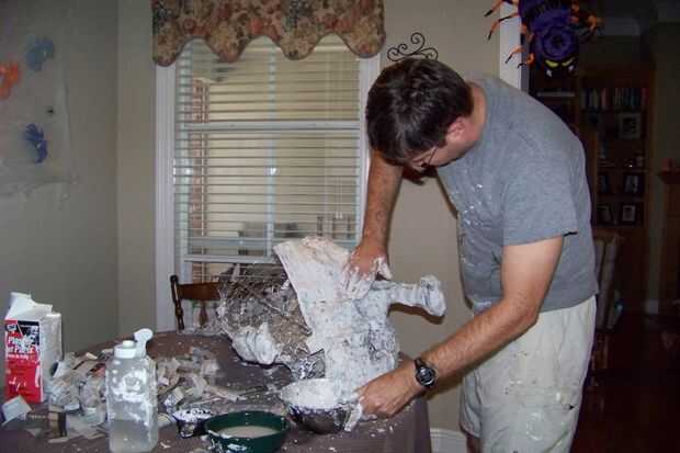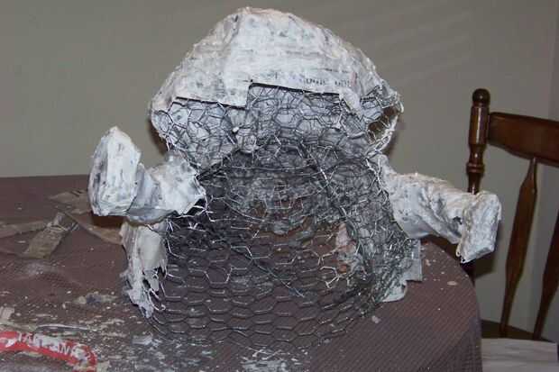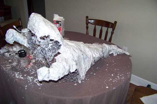 4) una vez completa la parte superior, y se seca, darle la vuelta y comienzan a las secciones inferiores de la capa. Usted encontrará los palitos yeso y periódicos mejor a las capas ya secas.