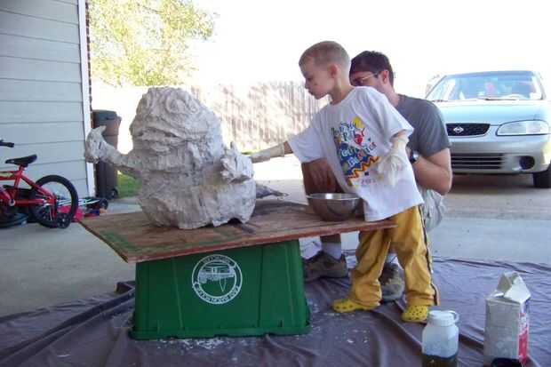 1) una vez que haya completado todas las capas de periódico y ha cubierto completamente el armazón de alambre y ha añadido todas las características faciales, ahora es momento de eliminar todo.