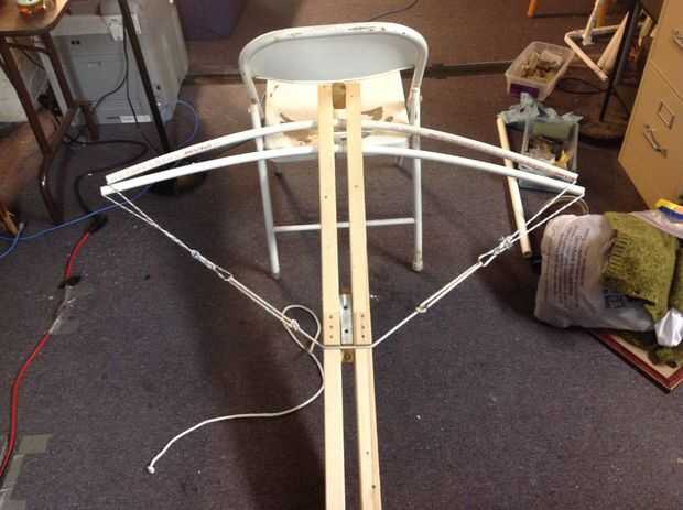 Cuadro 3 a 8 ilustran todo el proceso. Conectar a carbiner de brazo de carga a la cuerda de leña y tire hacia atrás para colocar la cuerda en los dos bloques de 3" donde llevará a cabo en el lugar. Tenga cuidado de no poner las manos delante de la cuerda tanto como sea posible! Desconecte la carga caribiner del brazo y coloque el extremo enmuescado del perno de la cuerda. Busca una tabla de destino y tire del gatillo hacia atrás. El perno puede golpear con la suficiente fuerza para perforar un agujero a través del tablero de partícula y cartón! Asegúrese de que tiene algo que dejará los pernos si ellos no atina al blanco.