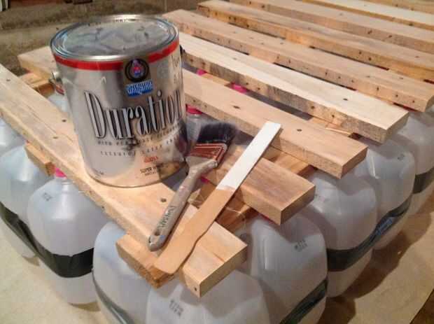 Una vez que la balsa se lija a tu gusto, pintar con una pintura exterior durable. Se mojan y ver algunos desbaste bajo sus zapatos, por lo que la pintura interior probablemente no hace el corte.