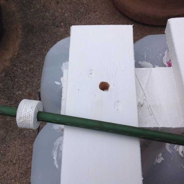 A continuación, perfore un agujero en uno de su balsa tablones o tableros de pontón para el polo. Pegamento caliente una parada (mina corto con una sierra) el poste en la profundidad adecuada para evitar que la bandera se hunda demasiado en el agujero.