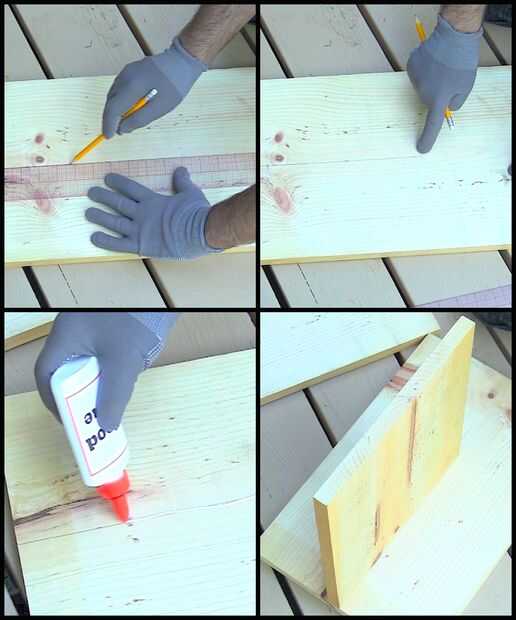 Agregue el pegamento a la línea y posición de la Junta de 13" de largo en la línea de