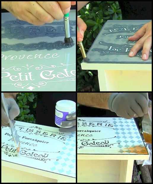 Plantilla la plantilla de panadería francesa en el centro de la silla con pintura de revestimiento calcáreo reliquia