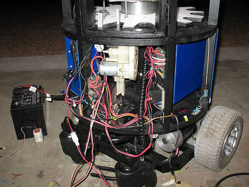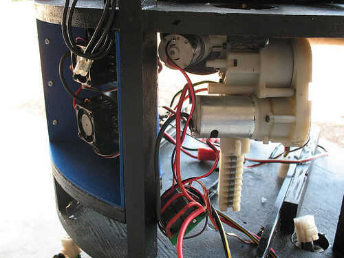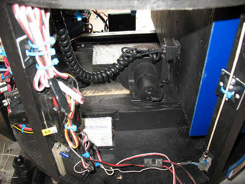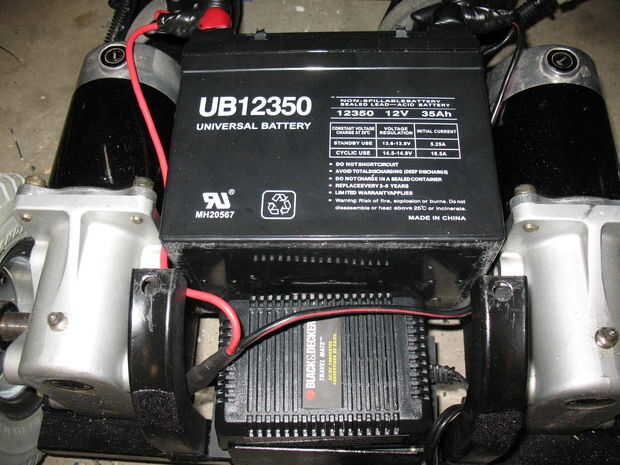 Reutilizado los arneses de cableado y los enchufes de la silla de ruedas para proporcionar cables de la batería, un interruptor principal y los motores. Esto le permite fácilmente desenchufe todo para el transporte. Los interruptores y cables fueron comprados en Radio Shack.