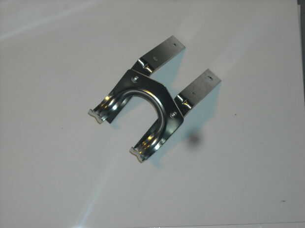 Usar los pernos más cortos con sus tuercas según montar el Gancho de la herramienta a las dos Abrazaderas de las esquinas, tomando cuidado para asegurarse de que alinee paralelamente.