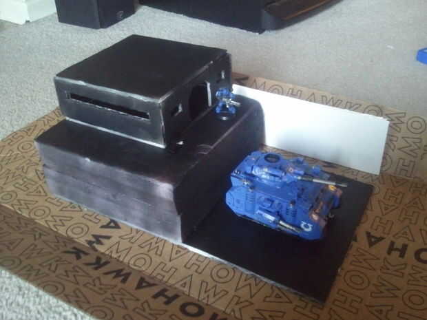 una vez que el pegamento se haya secado o antes si se prefiere un color uniforme, utilice una base de agua (no aceite que come la espuma) base primer esto pueden ser obtenidas en tu tienda de hobby local! mientras está secando el pegamento cortamos puertas y la segunda historia del proyecto, te darás cuenta que pegar 2 piezas de SM (aislamiento de construcción poliestireno 2") para añadir cierta altura al búnker.