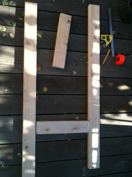 2 x 4 (largos de 2 x 8 pies). Cortar en longitudes de 2 x 50" y longitudes de 2 x 16"