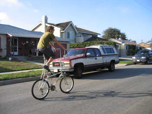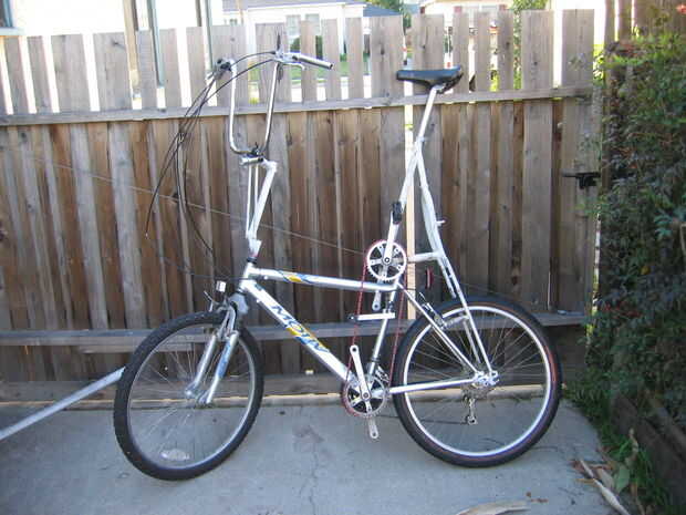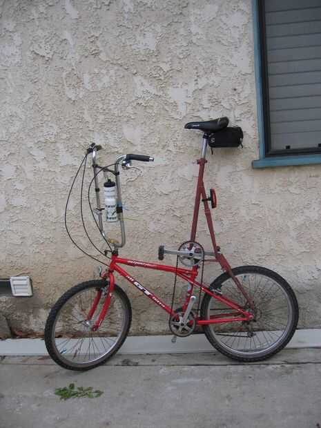 Aquí es algo que realmente va a desarrollar su neuro-plasticidad. Una bicicleta cuya rueda delantera gira a la derecha cuando se gira el manillar izquierdo y visa versa.No me pregunta por qué, porque no tengo una respuesta. Un amigo quería la moto y