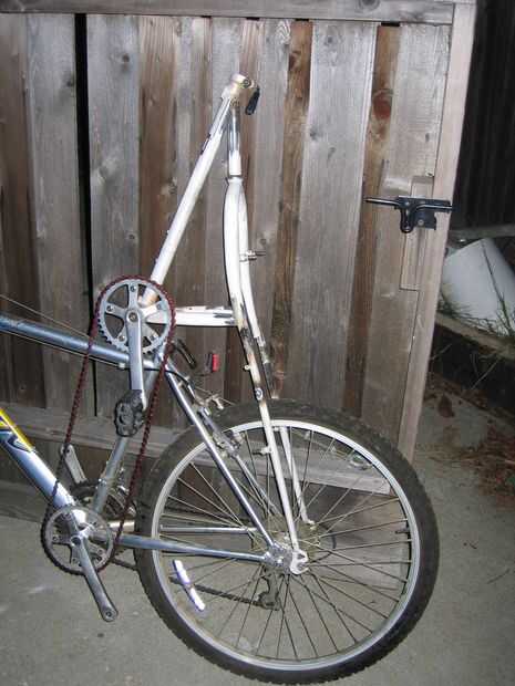 Cortan los tirantes de uno al otro, perfore las roscas del montaje de estante, perno para el droupouts de la moto de la parte inferior, los extremos superiores de las hojas de la horquilla de la tachuela y listo, estancias del asiento.