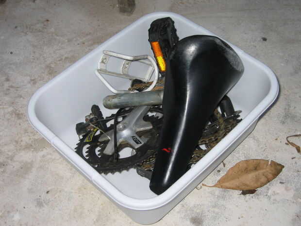en primer lugar, para facilitar las cosas, vas a querer tira todos los componentes de la mitad trasera de su bicicleta superior, manivelas, desviadores, pedalier, frenos, tija de sillín, rueda trasera