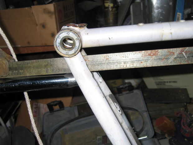 En retrospectiva, podría también ello, corte el tubo del sillín en ángulo, soldadura en una placa, tal como una placa de la pata de cabra, tahen soldadura la placa en la parte inferior de las vainas, esto le permitirá mover el triángulo superior inferior y más perverso